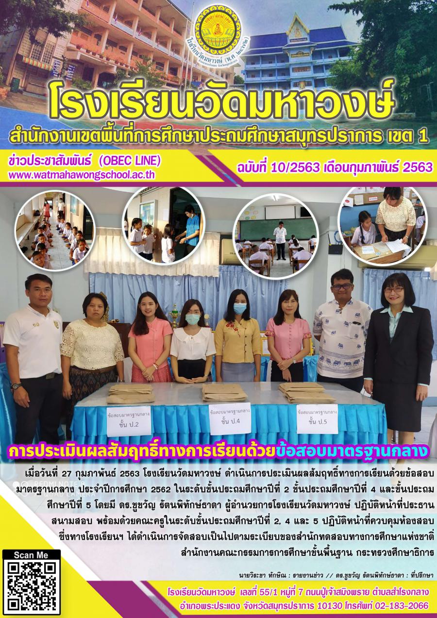 ฉบับที่ ๑๐/๒๕๖๓ การประเมินผลสัมฤทธิ์ทางการเรียนด้วยข้อสอบมาตรฐานกลาง ปีการศึกษา ๒๕๖๒