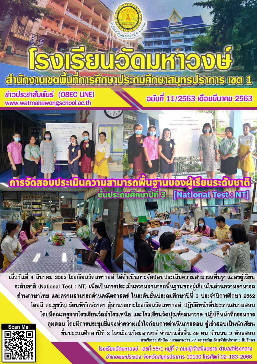 ฉบับที่ ๑๑/๒๕๖๓ การทดสอบ NT ชั้น ป.๓