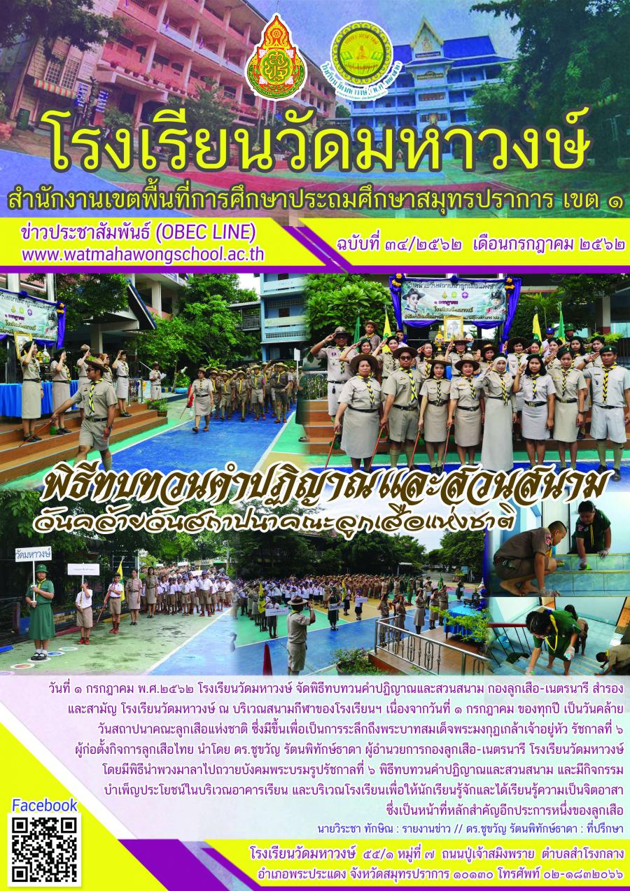 ฉบับที่ ๓๔/๒๕๖๒ วันคล้ายวันสถาปนาคณะลูกเสือแห่งชาติ ปีการศึกษา ๒๕๖๒