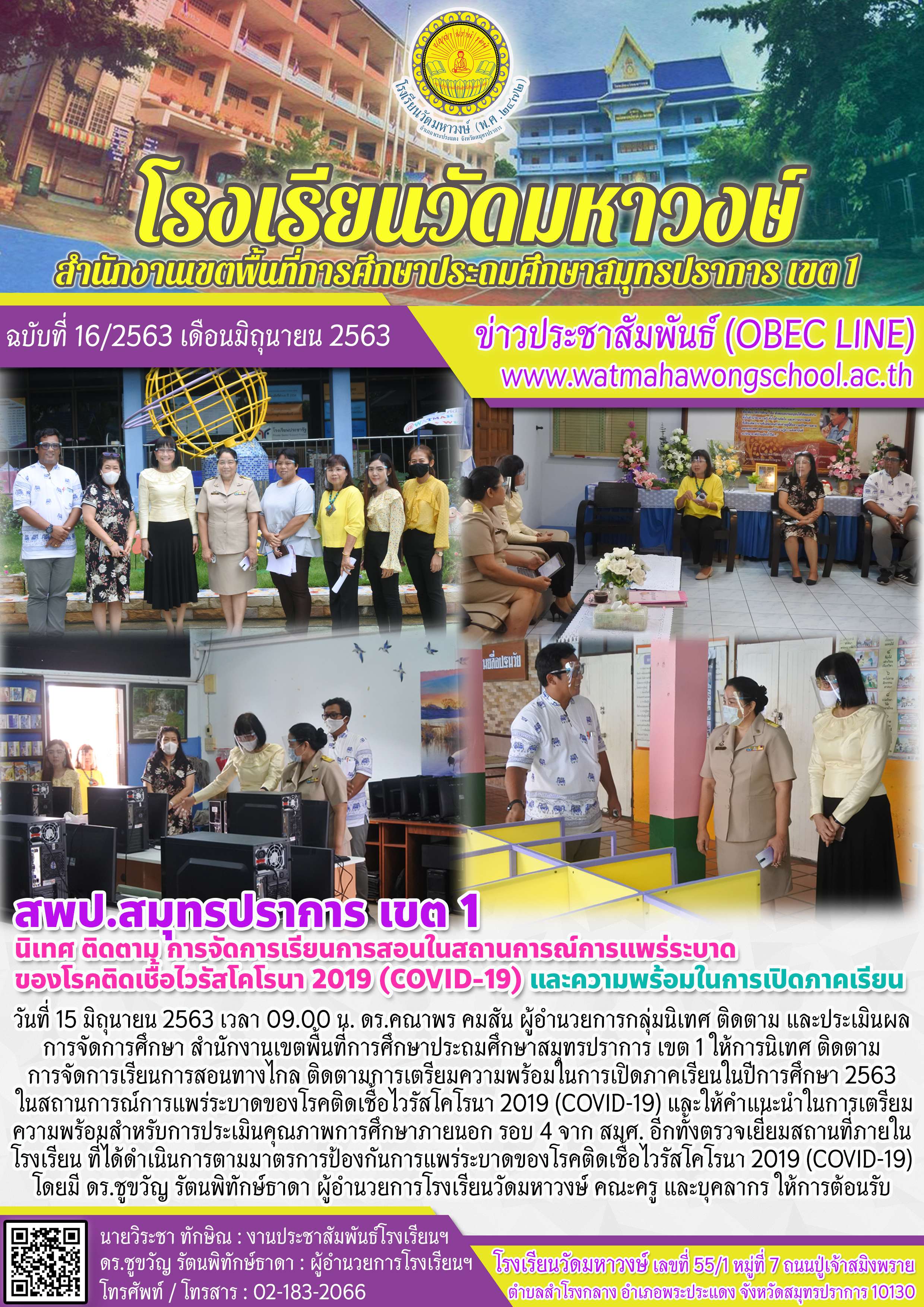 ฉบับที่ ๑๖/๒๕๖๓ สพป.สมุทรปราการ เขต ๑ นิเทศ ติดตาม การจัดการเรียนการสอนทางไกลในสถานการณ์การแพร่ระบาดของโรคติดเชื้อไวรัส COVID-19