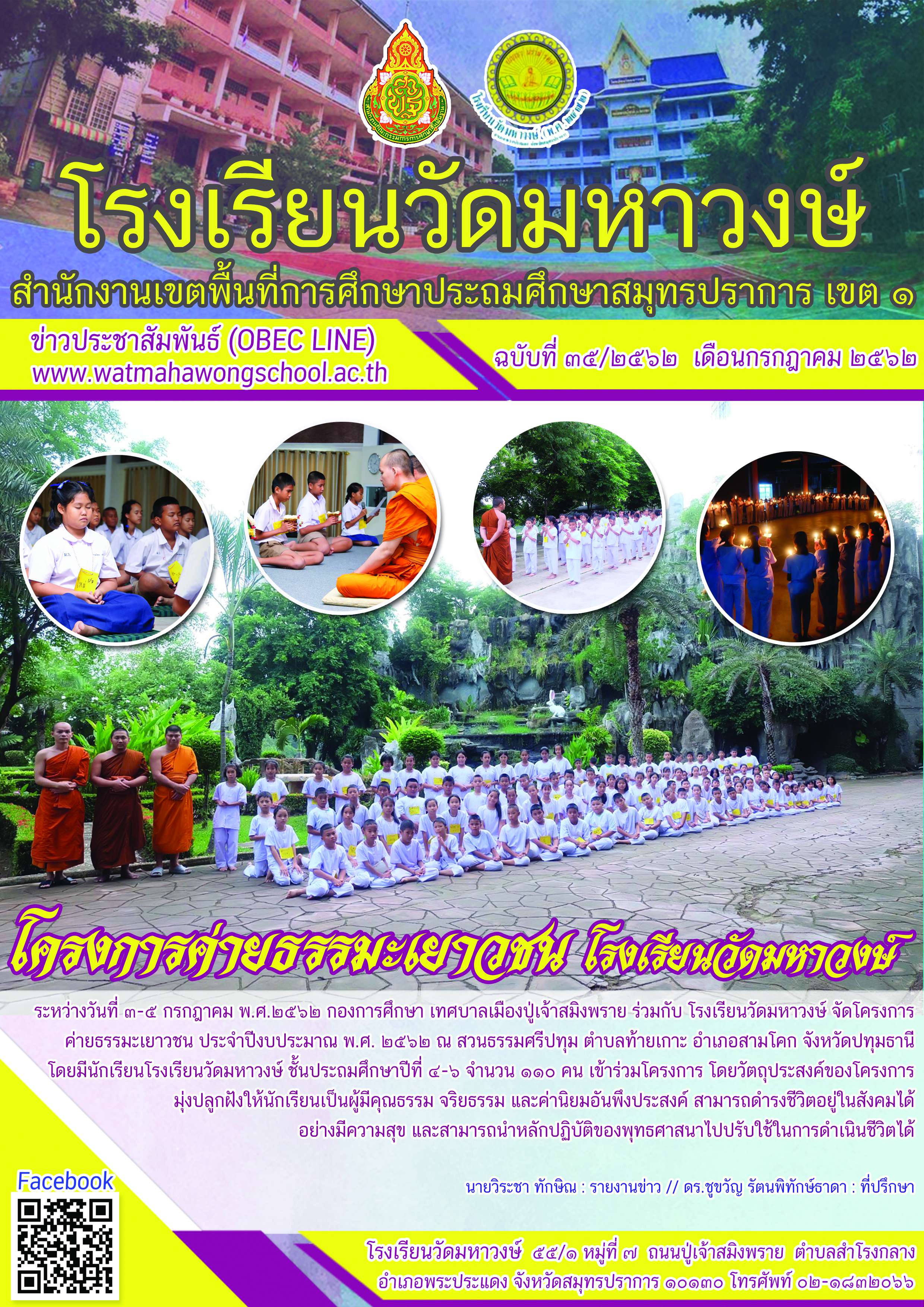 ฉบับที่ ๓๕/๒๕๖๒ โครงการค่ายธรรมะเยาวชน นักเรียนชั้นประถมศึกษาปีที่ ๕