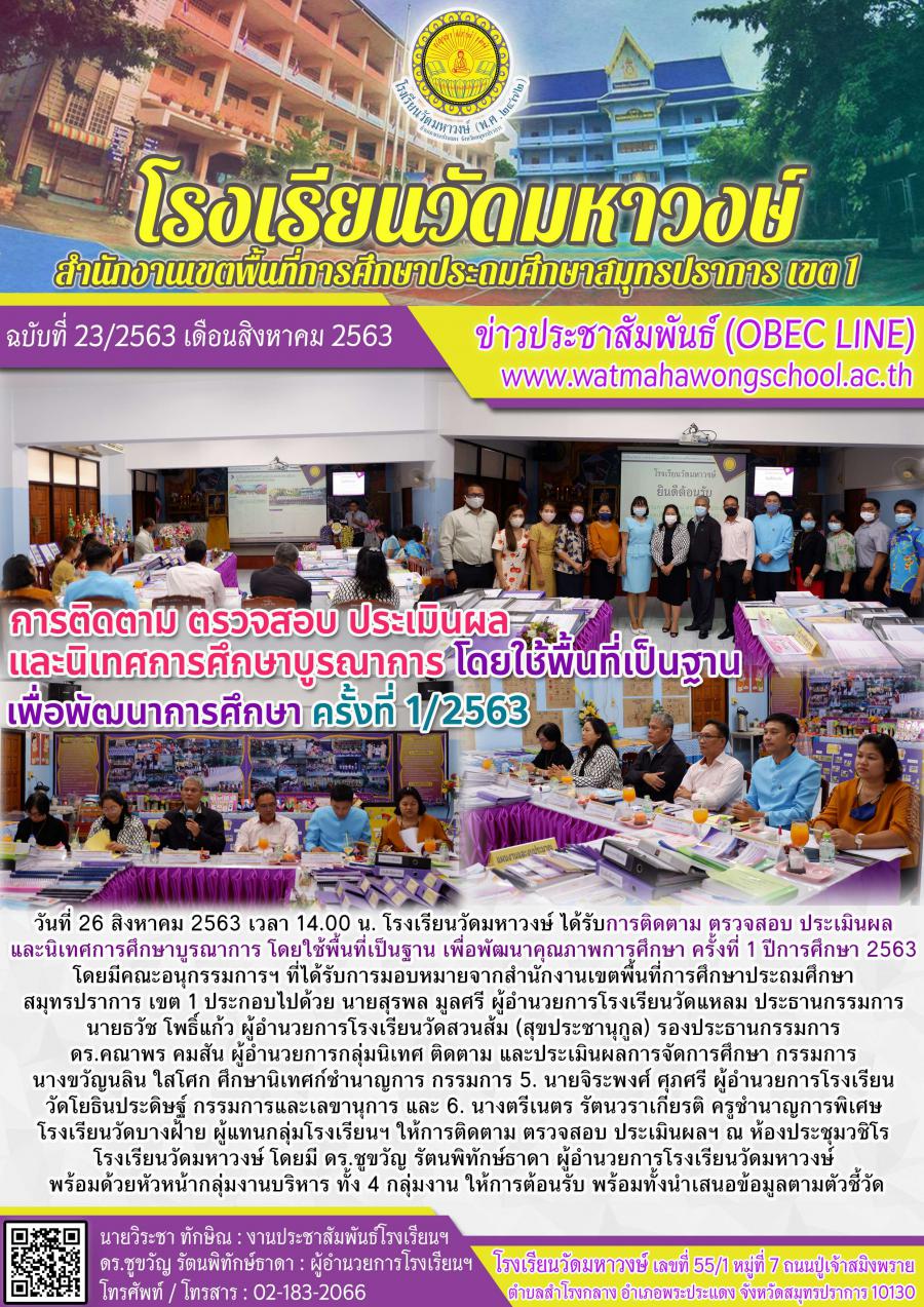 ฉบับที่ ๒๓/๒๕๖๓ การติดตาม ตรวจสอบ ประเมินผล และนิเทศการศึกษาบูรณาการ โดยใช้พื้นที่เป็นฐาน เพื่อพัฒนาการศึกษา