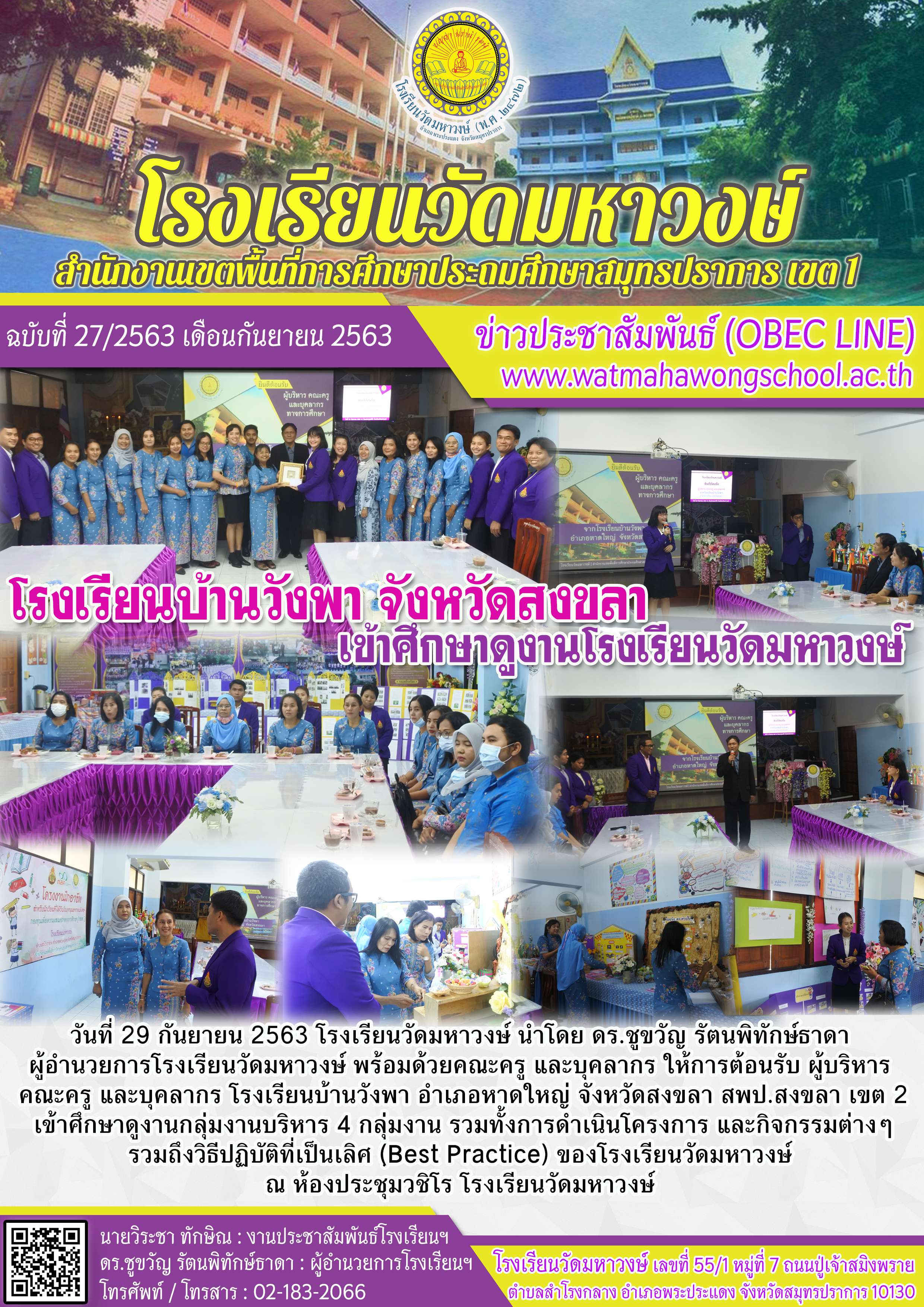 ฉบับที่ ๒๗/๒๕๖๓ โรงเรียนบ้านวังพา จังหวัดสงขลา เข้าศึกษาดูงาน