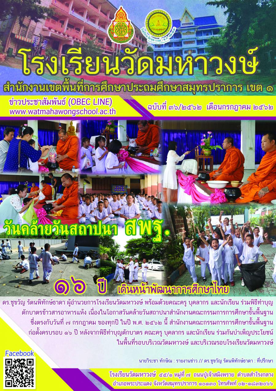 ฉบับที่ ๓๖/๒๕๖๒ วันคล้ายวันสถาปนา สพฐ. ครบรอบ ๑๖ ปี