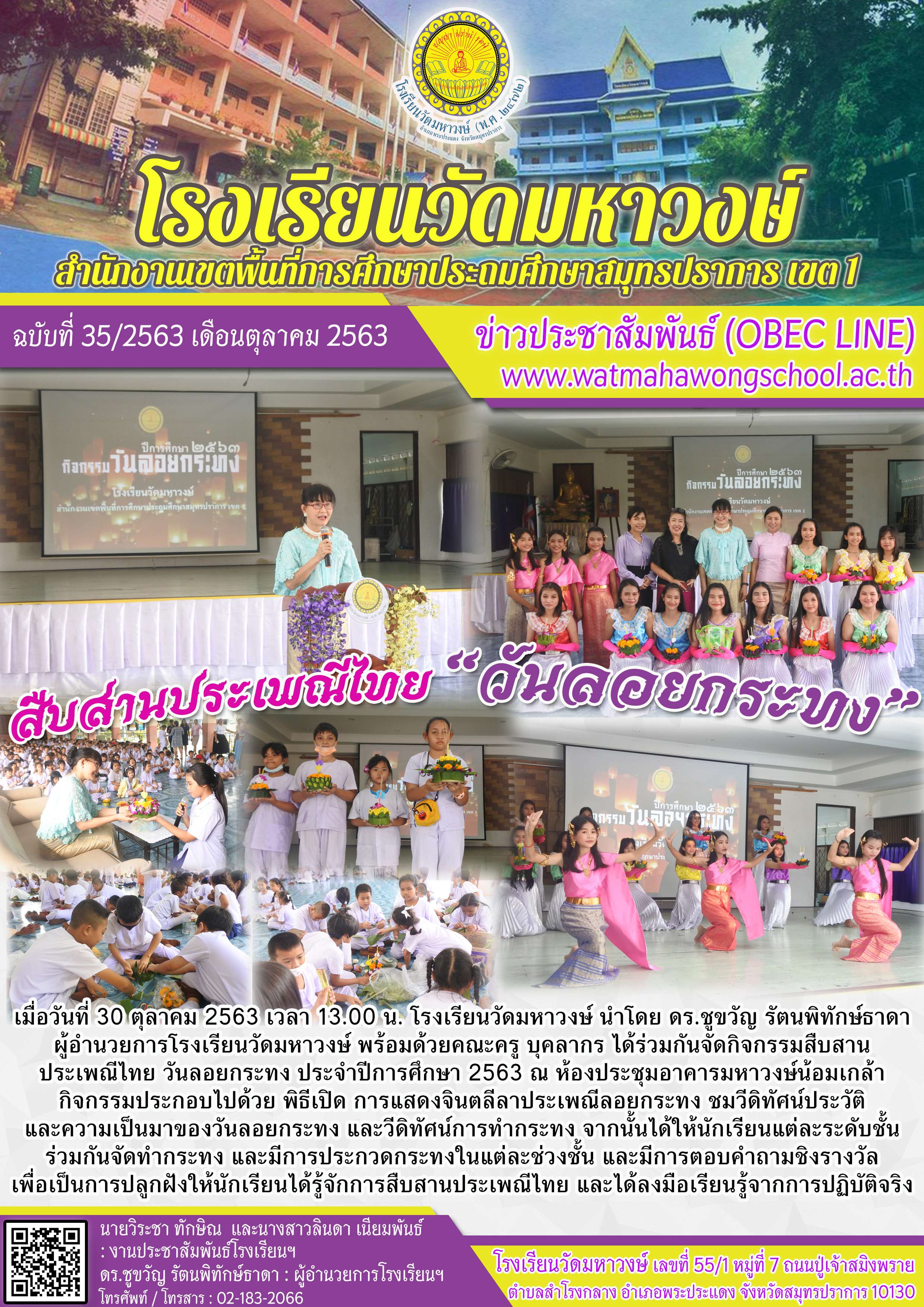 ฉบับที่ ๓๕/๒๕๖๓ สืบสานประเพณีไทย วันลอยกระทง ปีการศึกษา ๒๕๖๓