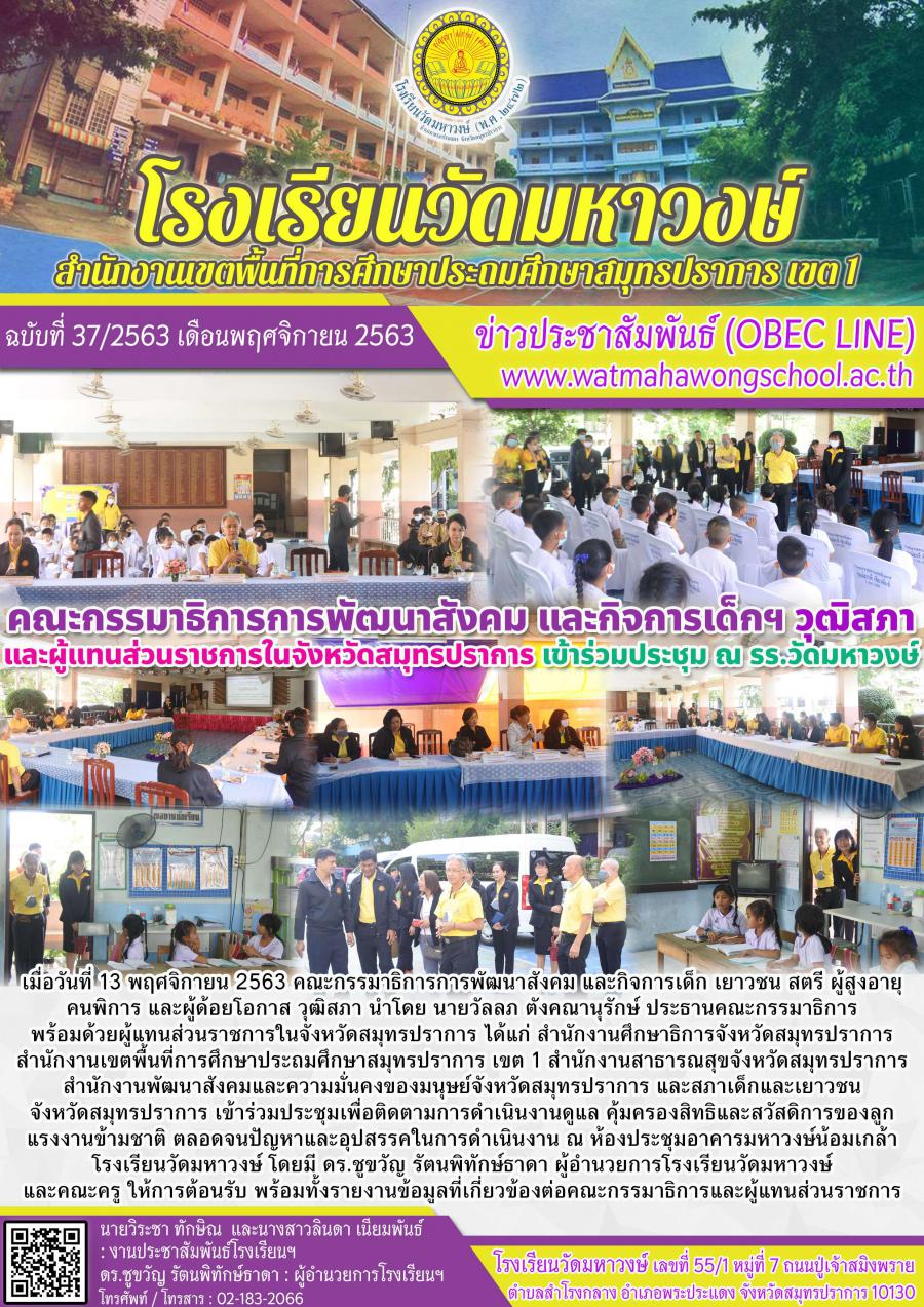 ฉบับที่ ๓๗/๒๕๖๓ ประชุมเพื่อติดตามการดำเนินงานดูแล คุ้มครองสิทธิและสวัสดิการของลูกแรงงานข้ามชาติ