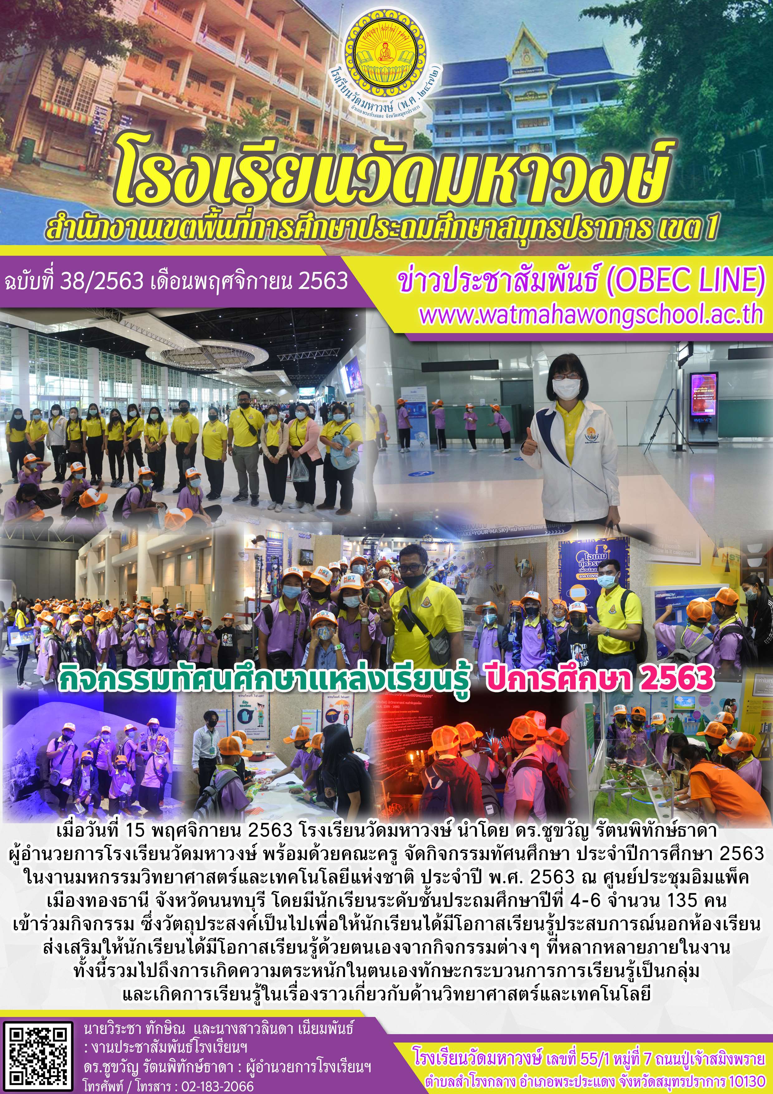 ฉบับที่ ๓๘/๒๕๖๓ กิจกรรมทัศนศึกษาแหล่งเรียนรู้ ปีการศึกษา ๒๕๖๓