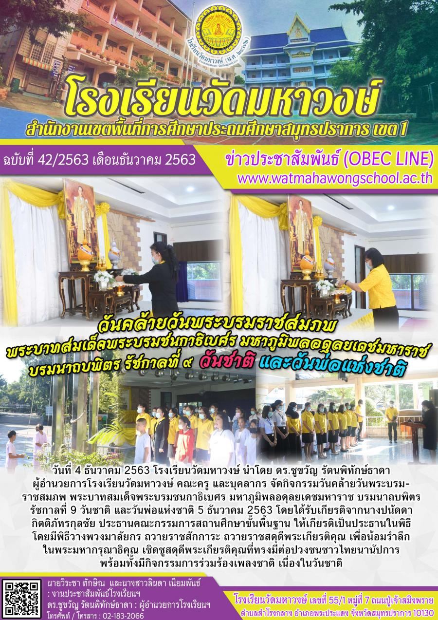 ฉบับที่ ๔๒/๒๕๖๓ วันคล้ายวันพระบรมราชสมภพ รัชกาลที่ ๙ วันชาติ และวันพ่อแห่งชาติ