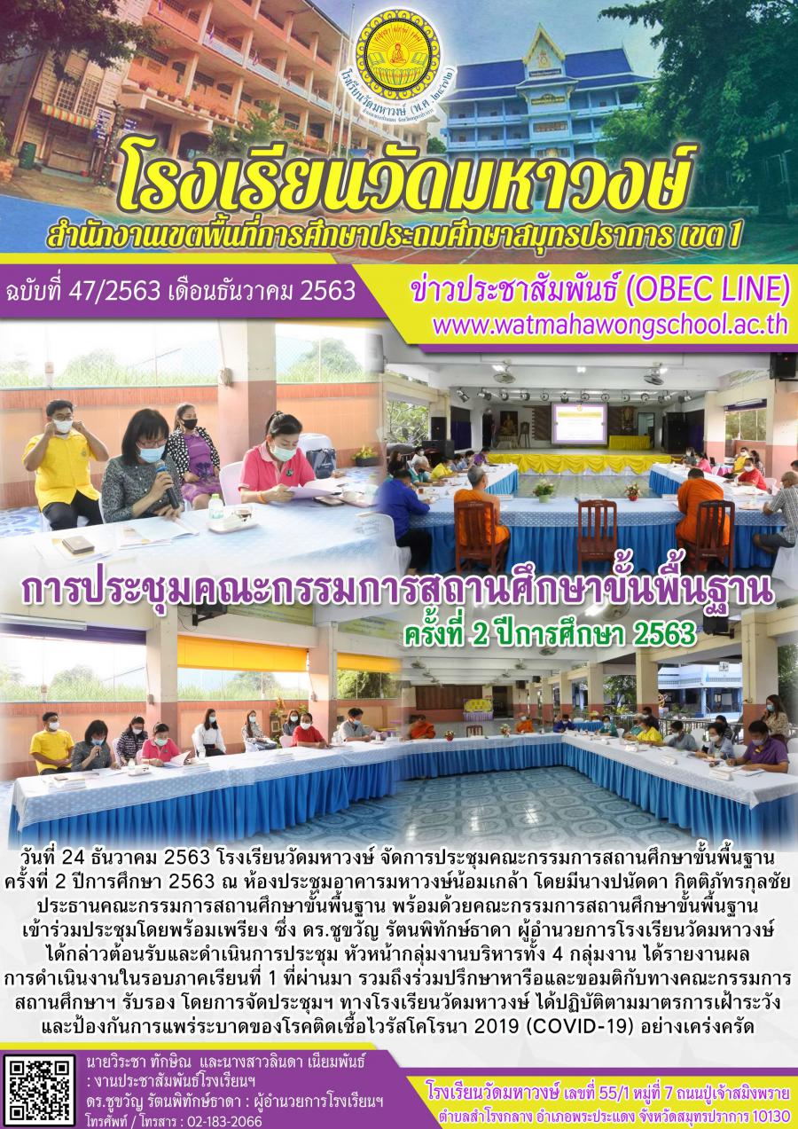 ฉบับที่ ๔๗/๒๕๖๓ การประชุมคณะกรรมการสถานศึกษาขั้นพื้นฐาน ครั้งที่ ๒/๒๕๖๓