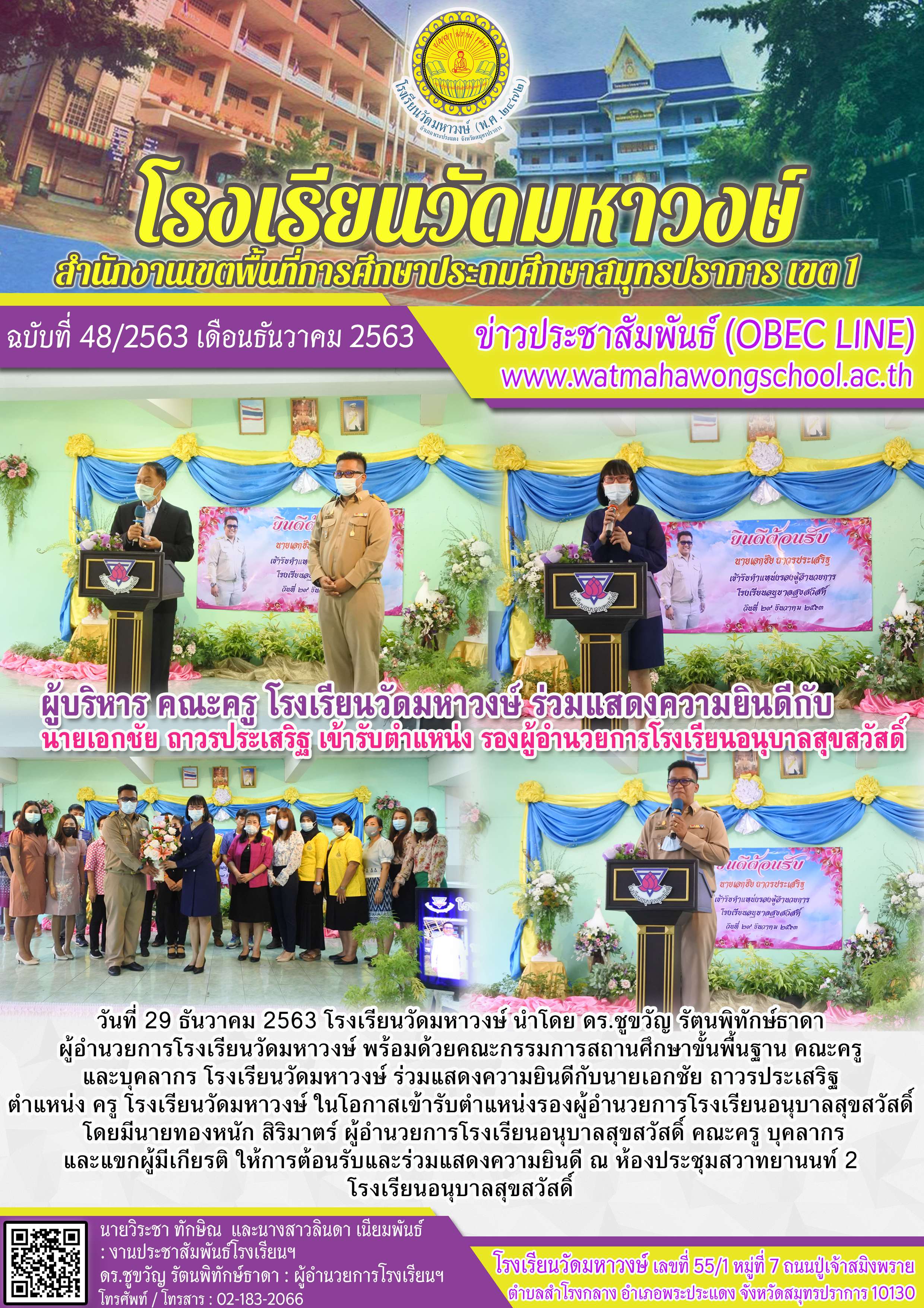 ฉบับที่ ๔๘/๒๕๖๓ ร่วมแสดงความยินดีกับรองฯ เอกชัย ถาวรประเสริฐ เข้ารับตำแหน่งรองผู้อำนวยการโรงเรียนอนุบาลสุขสวัสดิ์