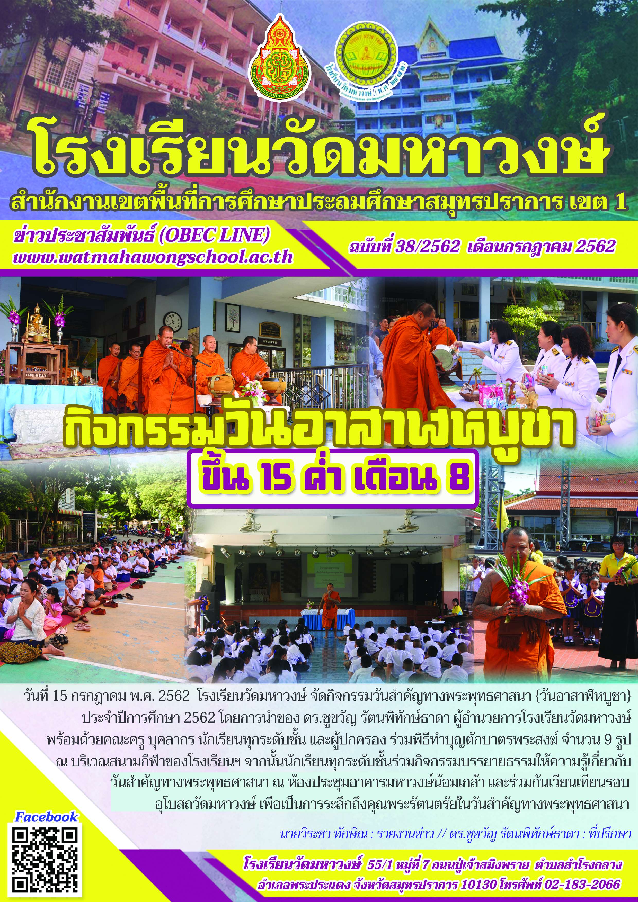 ฉบับที่ ๓๘/๒๕๖๒ กิจกรรมวันอาสาฬหบูชา ปีการศึกษา ๒๕๖๒