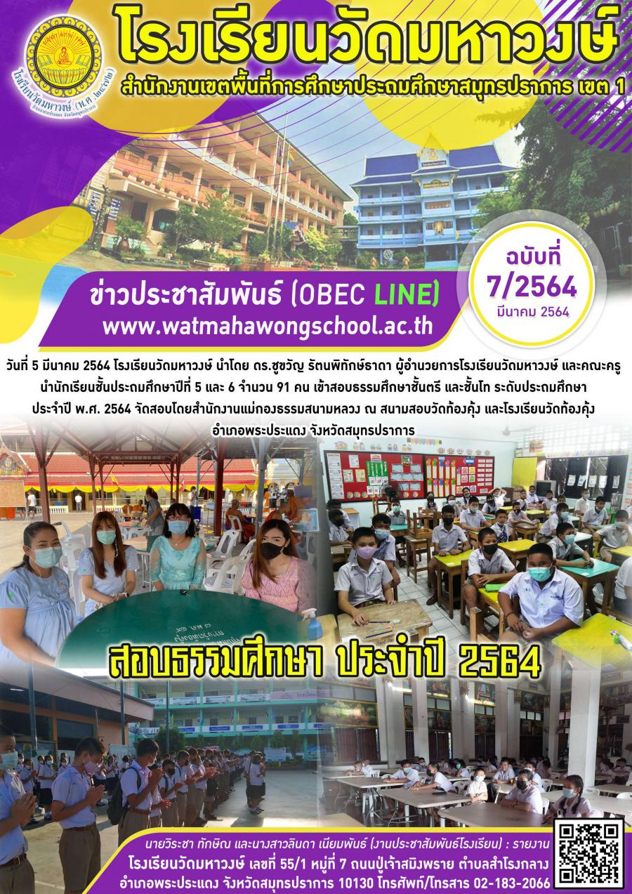 ฉบับที่ 7/2564 การสอบธรรมศึกษา ประจำปี 2564