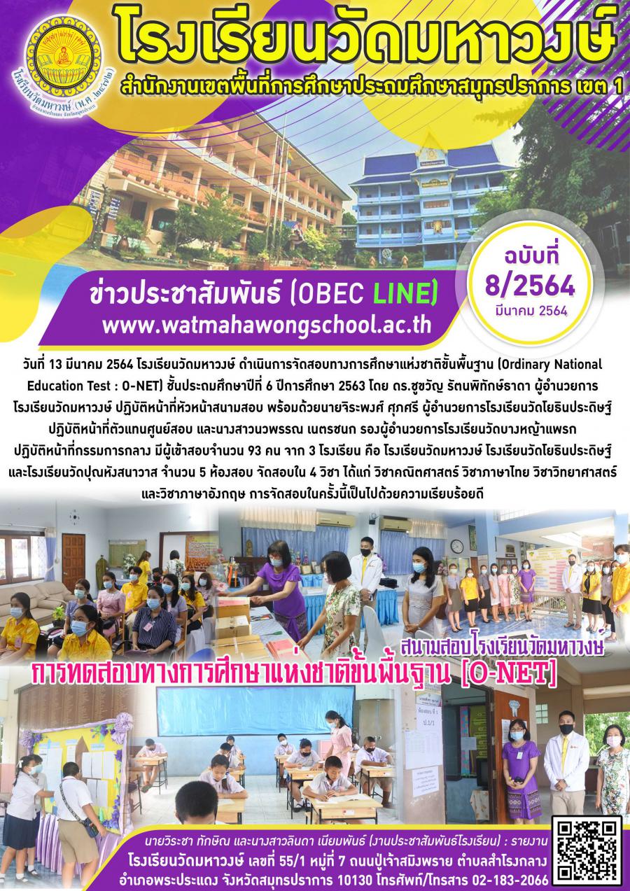 ฉบับที่ 8/2564 การทดสอบทางการศึกษาแห่งชาติขั้นพื้นฐาน (O-NET)