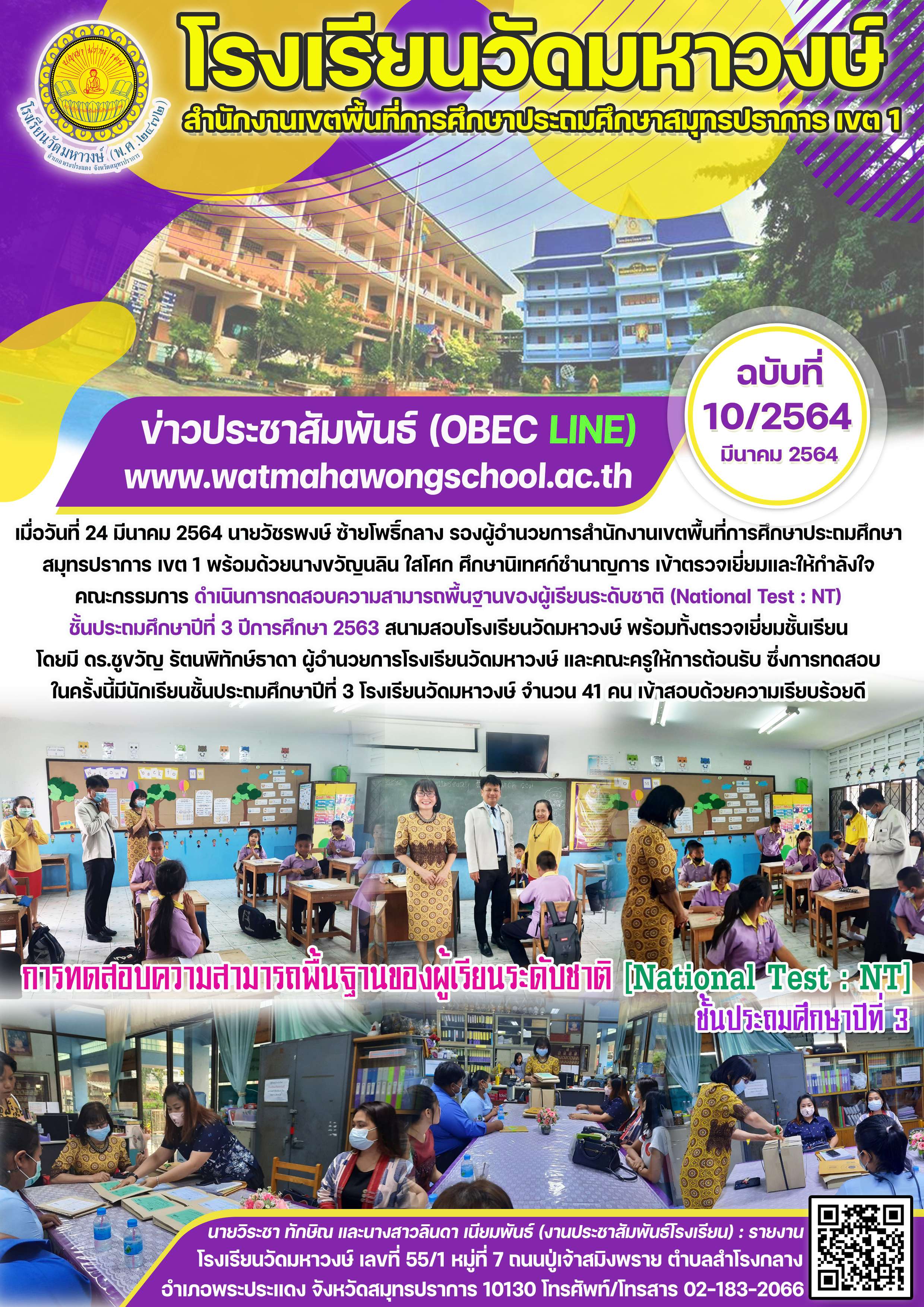 ฉบับที่ 10/2564 การทดสอบความสามารถพื้นฐานของผู้เรียนระดับชาติ (NT) ปีการศึกษา 2563