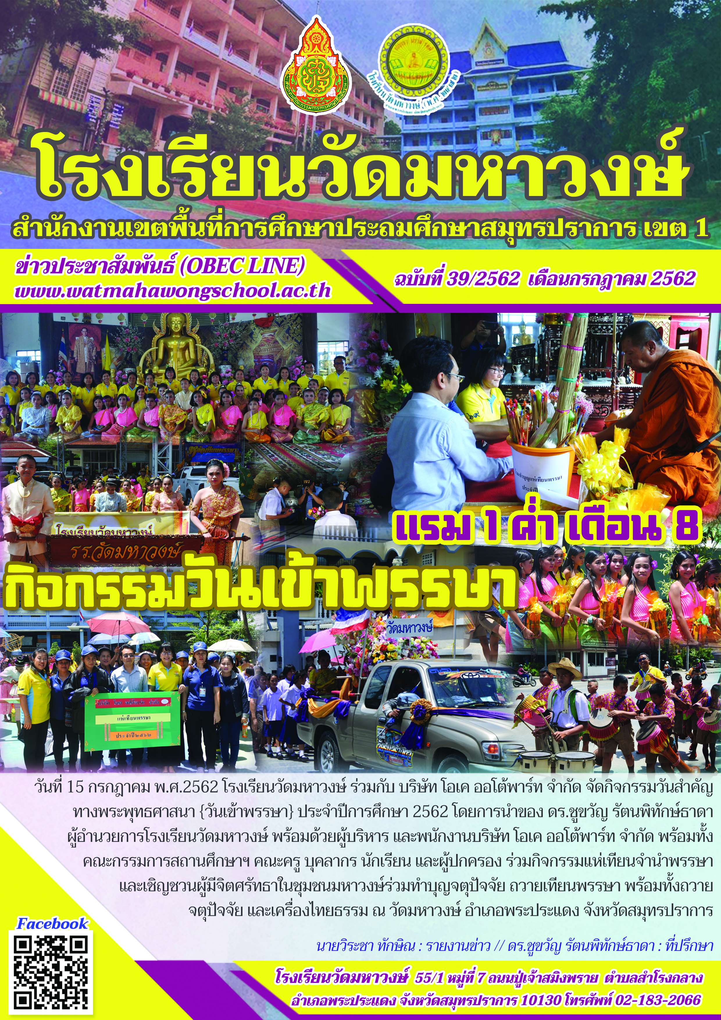ฉบับที่ ๓๙/๒๕๖๒ กิจกรรมวันเข้าพรรษา ปีการศึกษา ๒๕๖๒