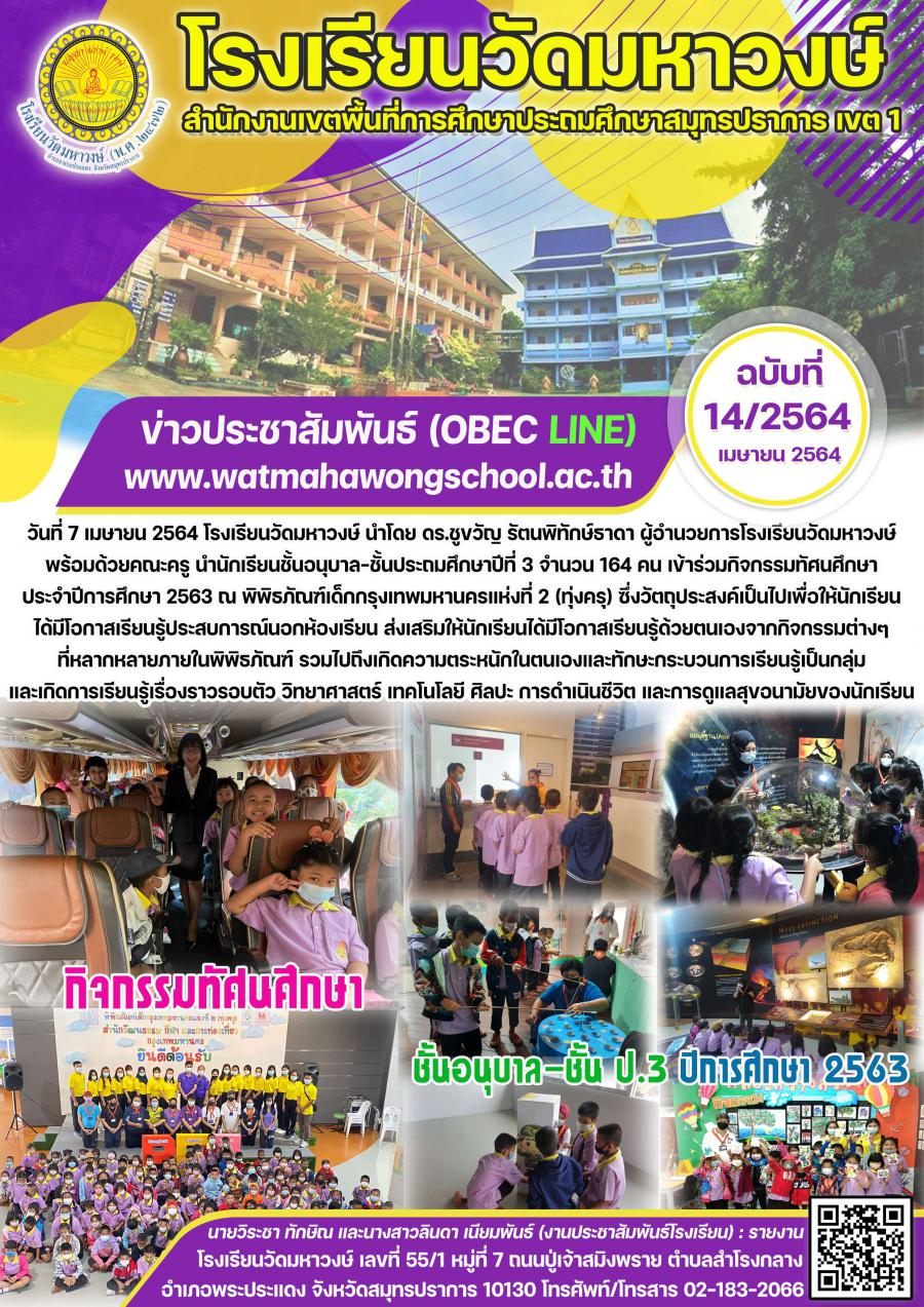 ฉบับที่ 14/2564 กิจกรรมทัศนศึกษา ชั้นอนุบาล-ป.3 ปีการศึกษา 2563