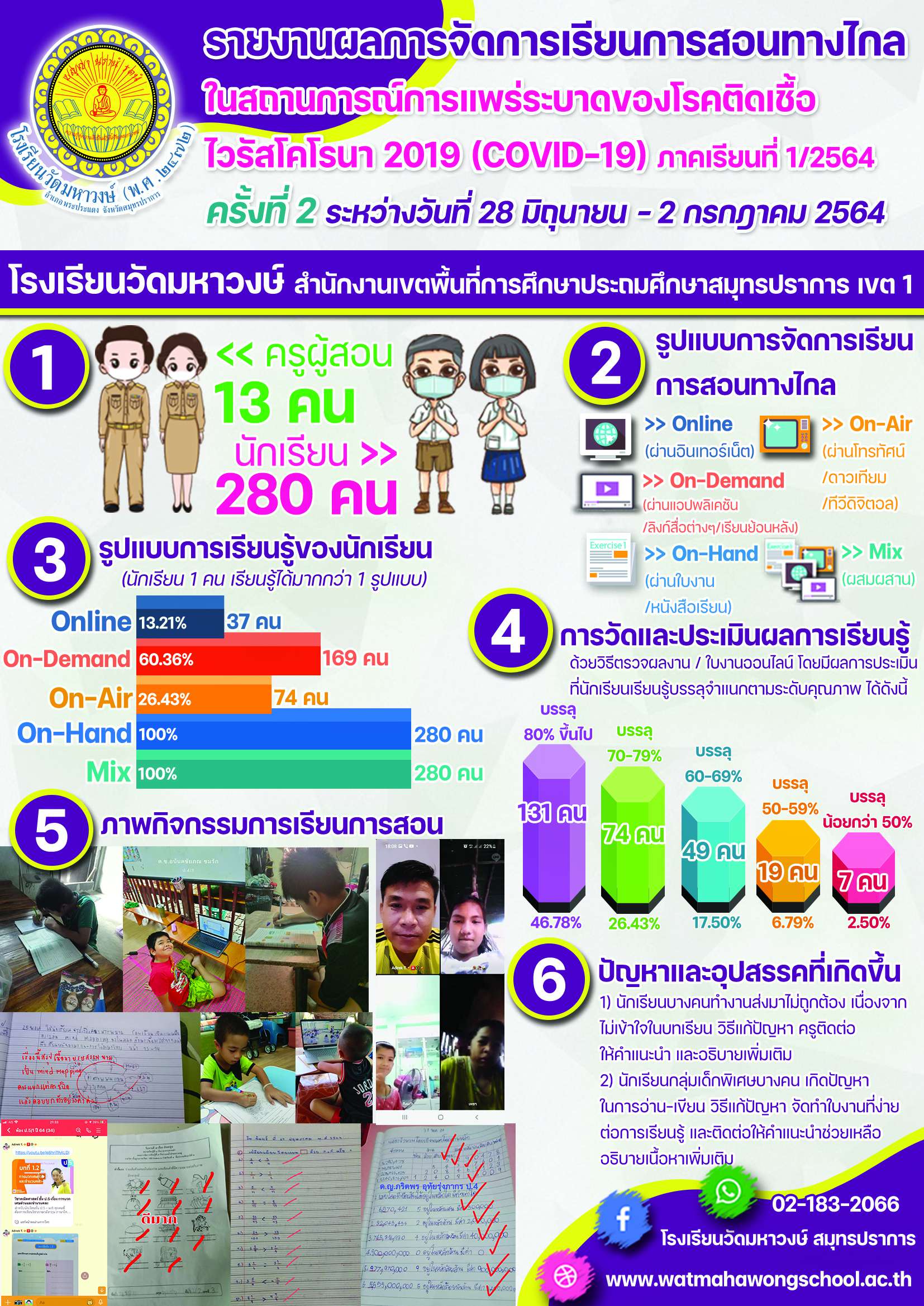 รายงานผลการจัดการเรียนการสอนฯ COVID-19 ภาคเรียนที่ 1 ปีการศึกษา 2564 สัปดาห์ที่ 3 (28 มิ.ย.-2 ก.ค. 2564)