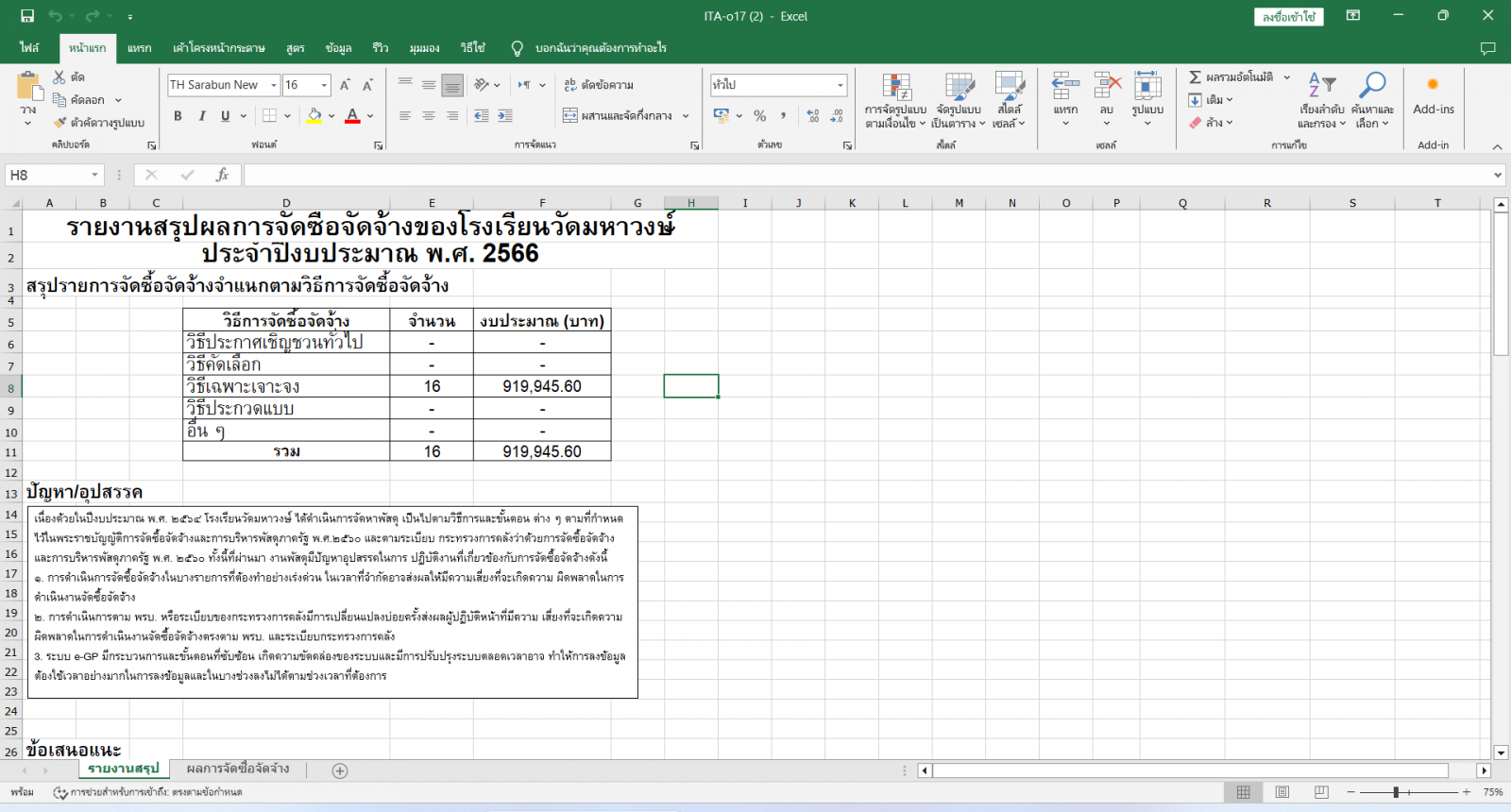 O17 : รายงานสรุปผลการจัดซื้อจัดจ้างหรือการจัดหาพัสดุประจำปี